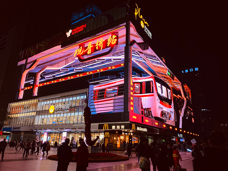 星空官网的户外“裸眼3D”显示屏在国内火速串红,成为国内城市新地标,让“裸眼3D”显示屏再次走到了产业界和社会大众的聚光灯下。星空官网推出的重庆“亚洲之光”裸眼巨幕解决方案,通过“特殊的屏体设计+创意十足的视频素材”结合,兼顾建筑美学并与商圈环境融为一体,一展都市繁华的同时,更将行人的视野处于最佳观看区域,带给目标受众更具沉浸式的体验。