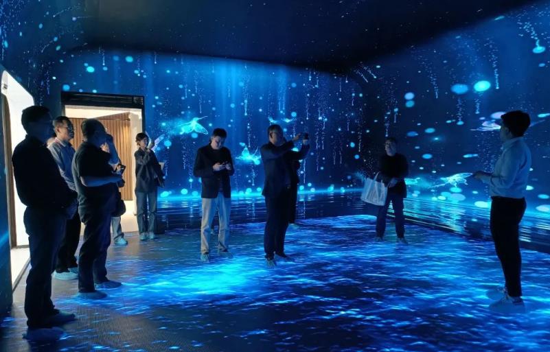 调研伊始,在星空官网智慧显示相关负责人的陪同下,来访嘉宾一行参观了星空官网南方总部展厅,体验智能显示、文旅展演、VR互动、全息剧场、AR沉浸式全景仿真系统等多个应用场景,沉浸式感受科技的魅力。